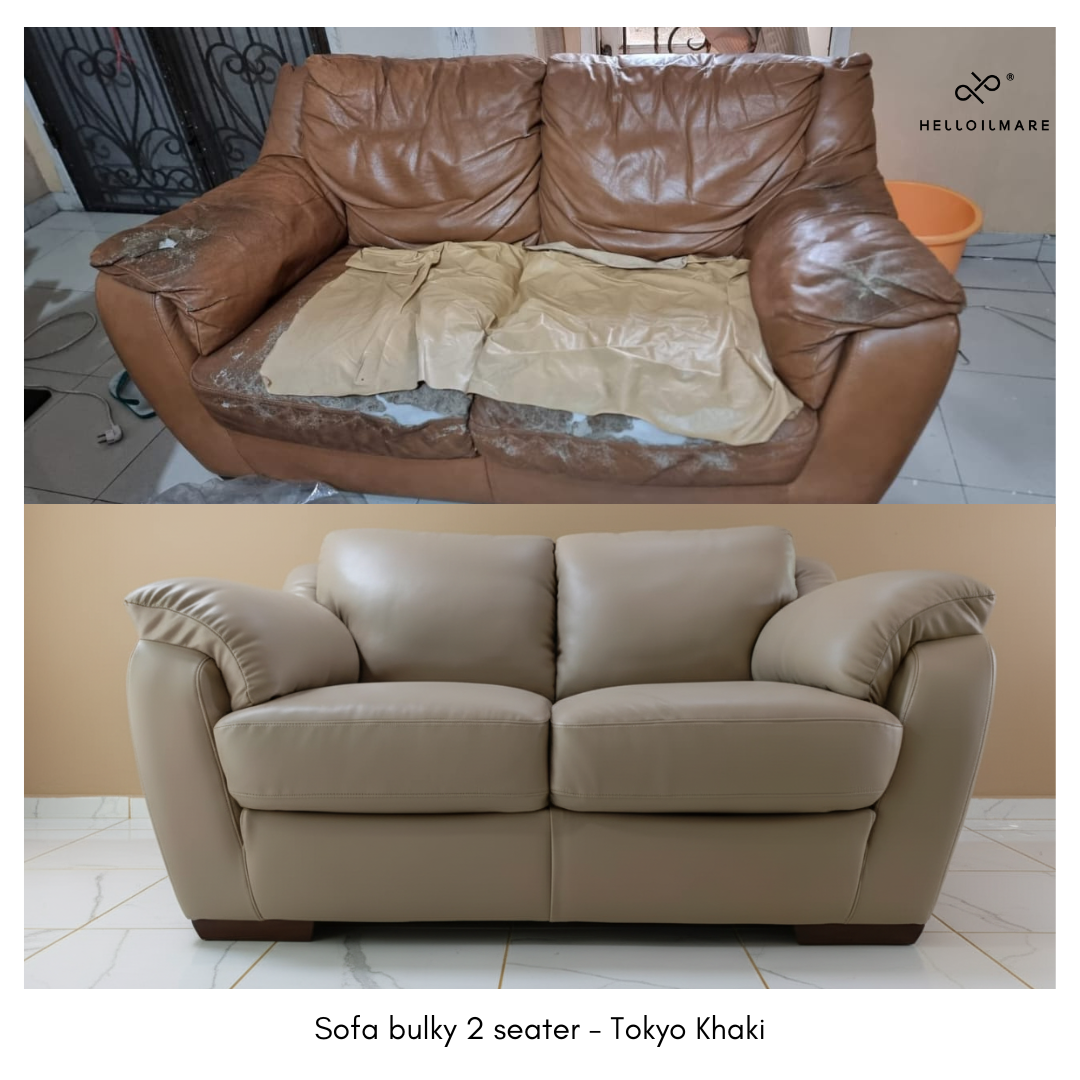 Paket ganti kain sofa 2 seater bulky dengan kulit sintetis
