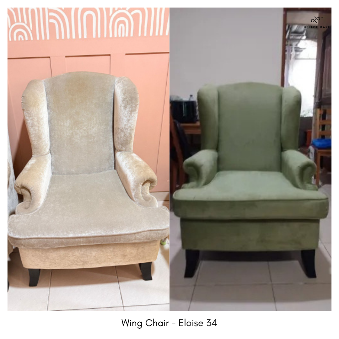 Paket ganti kain sofa wing chair dengan kain beludru